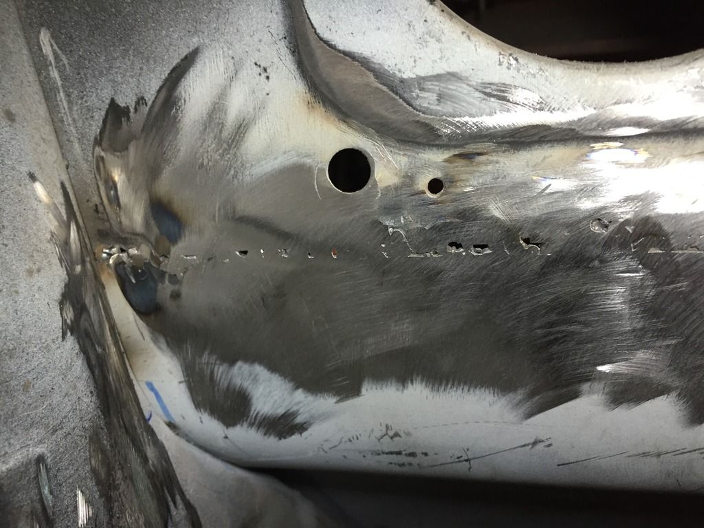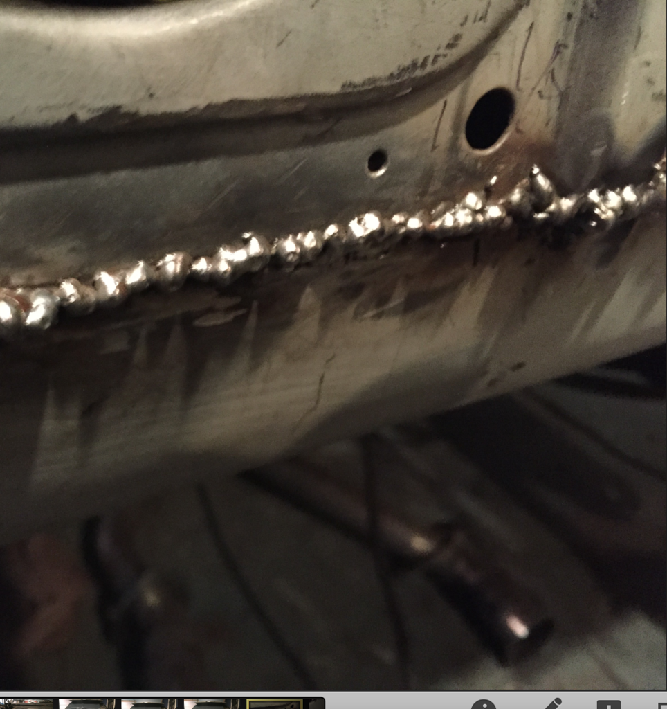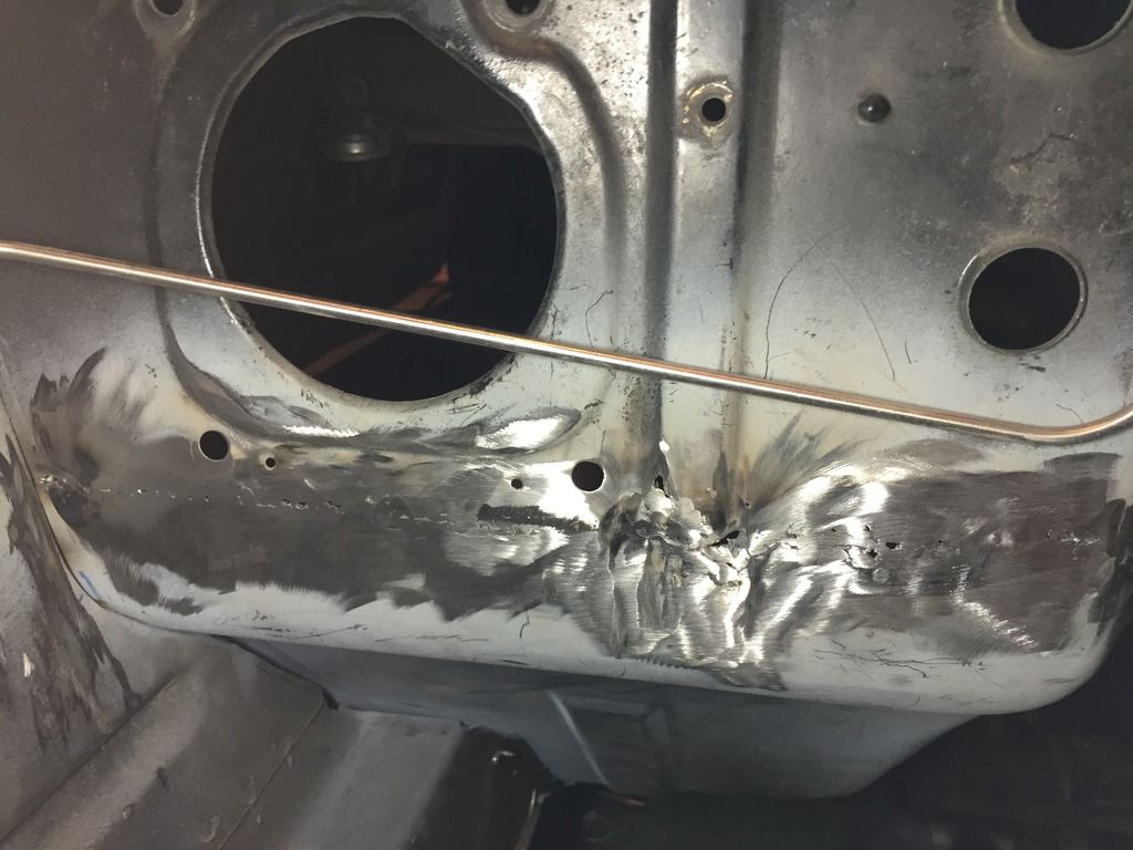 So a while back I started to cut out my rusty coupes floorboards and toe boards with the plan to replace them. I finally got to the point where I had a good gap all the way across and after a lot of practice I made a decent bead across it. My project has been all trial and error. It is for the sole purpose of teaching myself how to work on these cars. I tried to grind down the welds this past weekend with a 40 grit flap disc and a 60 grit flap disc and I made a bunch of pinholes and a few larger holes in my panels and in the welded area itself. Honestly I stink at welding but I am going to be taking a local welding class to improve my skills. I really want to know how to fill these welded holes I tried to weld them in but I blew through. Gas was set at around 20CFH. So I decided to either fill these holes with body solder or try some kind of filler, but Im not sure what to get. I don't ever plan on selling this car, it is not a show car, I just want to finish these holes and I have no idea how.